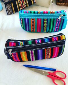 Chaque trousse est fabriquée artisanalement avec des tissus du Pérou, nous proposons également des modèles en cuir et tissu péruvien.