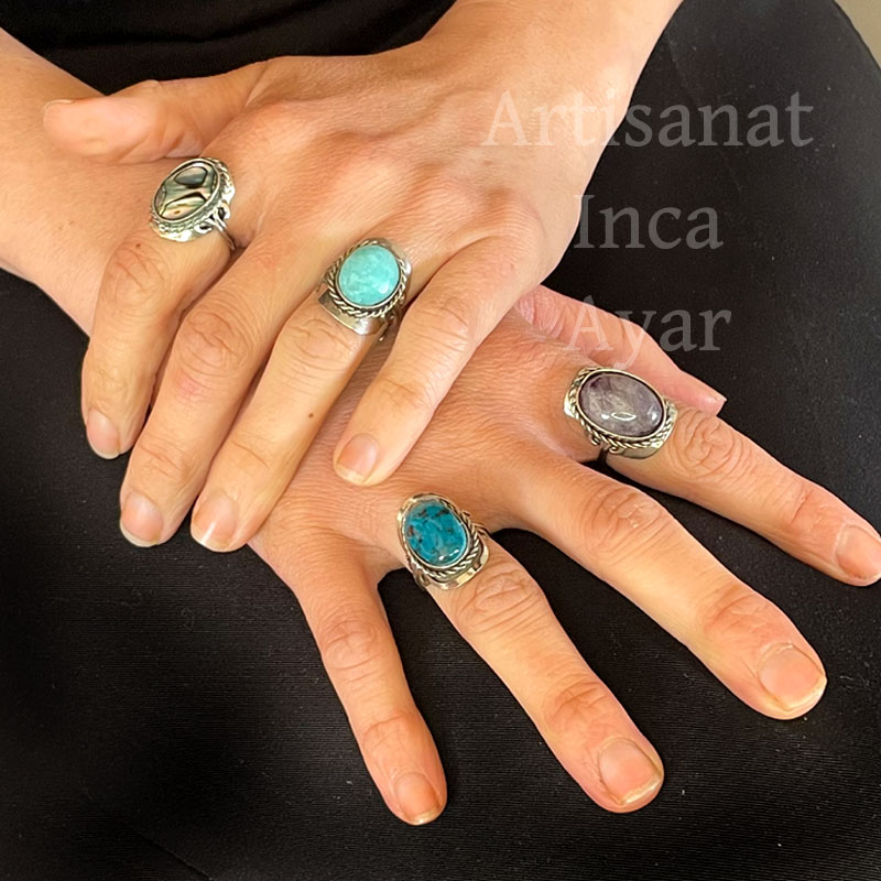 Bagues ornées de pierres semi précieuses du Pérou