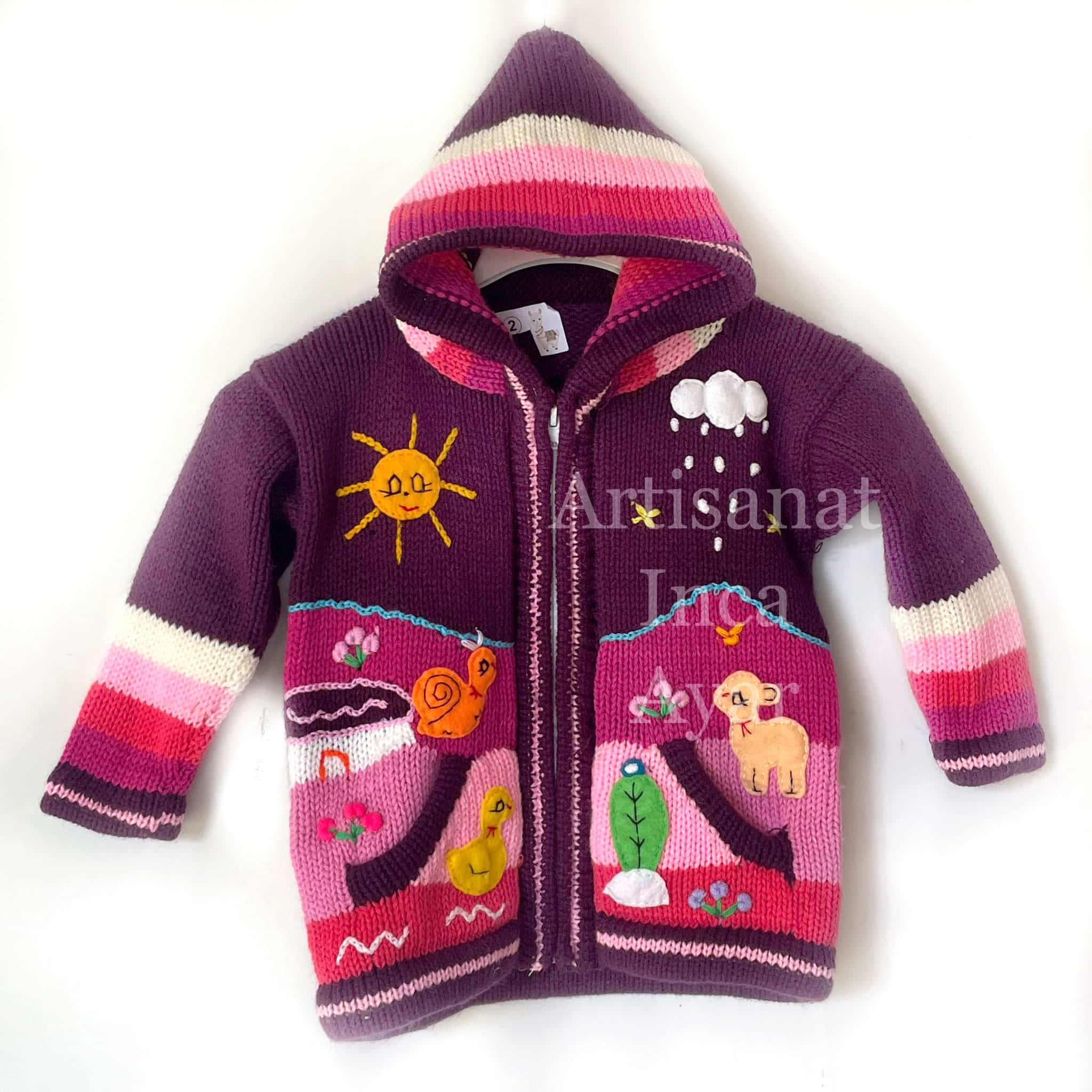Gilet péruvien enfant 10 mois/2 ans violet.