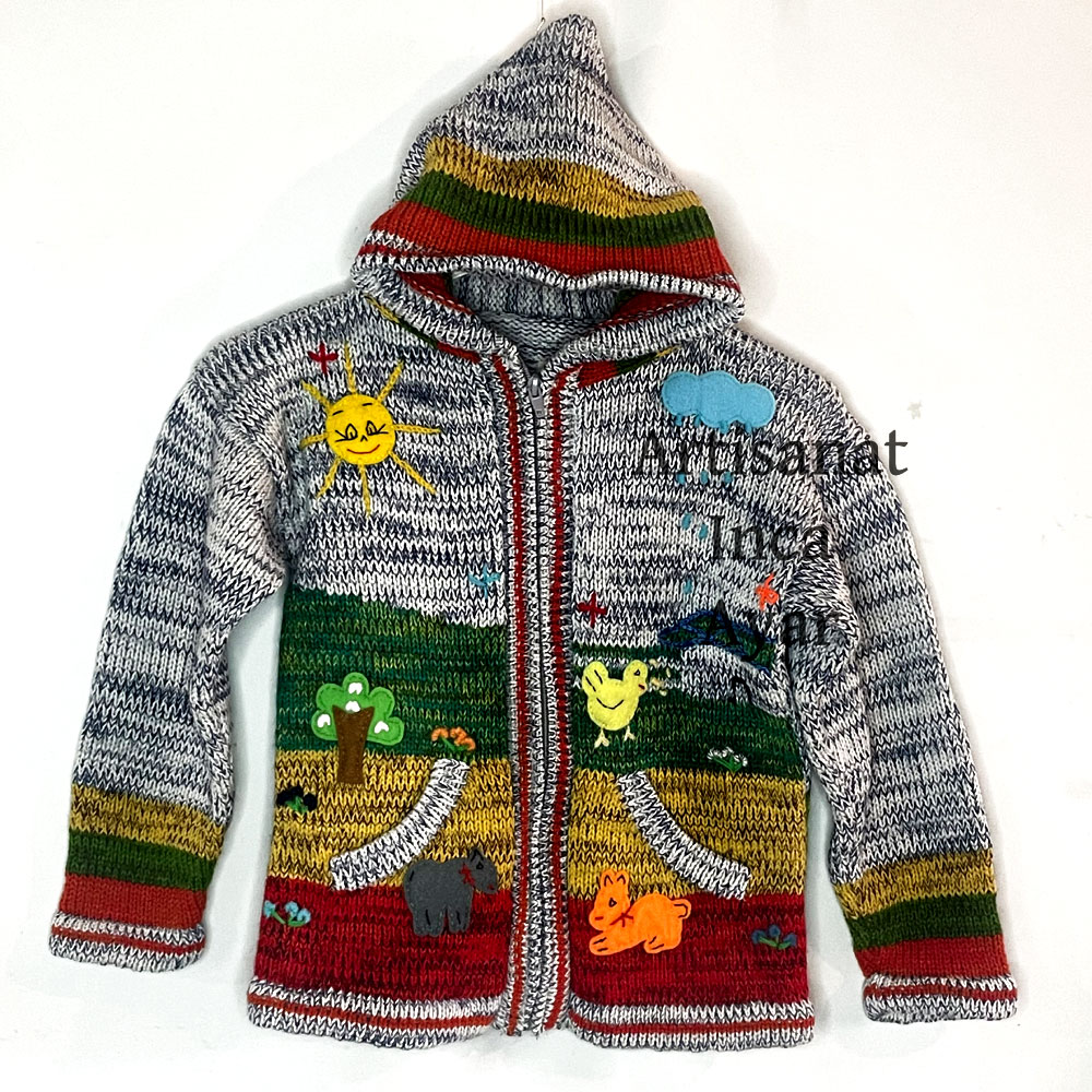 La veste péruvienne en laine que nous présentons ici est brodée à la main, chaque modèle de gilet ou pull pour enfant est donc unique et appartient à l’artisanat traditionnel de la région de Cusco au Pérou.