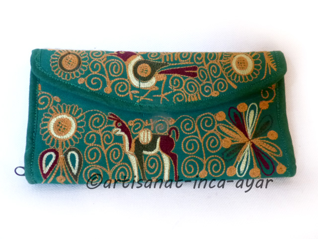 Long portefeuille en simili cuir et tissu péruvien. coloris au choix