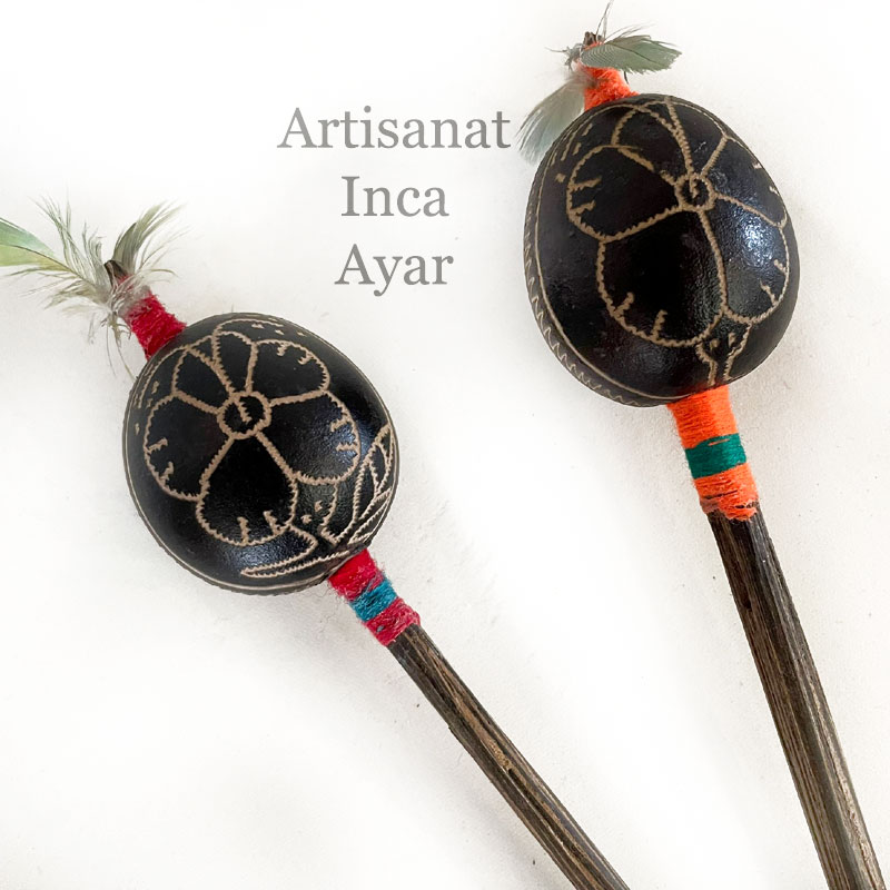 Ces maracas sont un travail typique et traditionnel des Natifs Shipibos du Pérou.