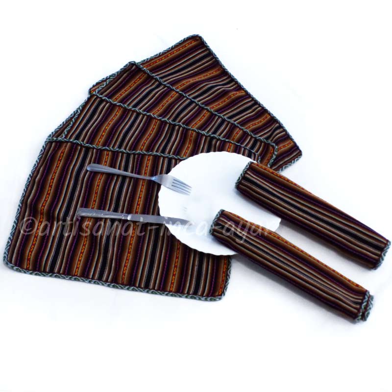 Sets de table en tissu péruvien noir et marron