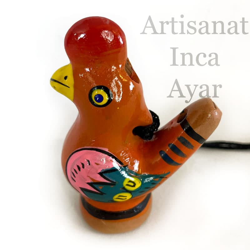 Chaque pièce est réalisée à la main dans les villages de la Vallée Sacrée dans la région de Cusco, dans les Andes, au Pérou. Ces ocarinas sont modelées et peintes de façon totalement artisanales.