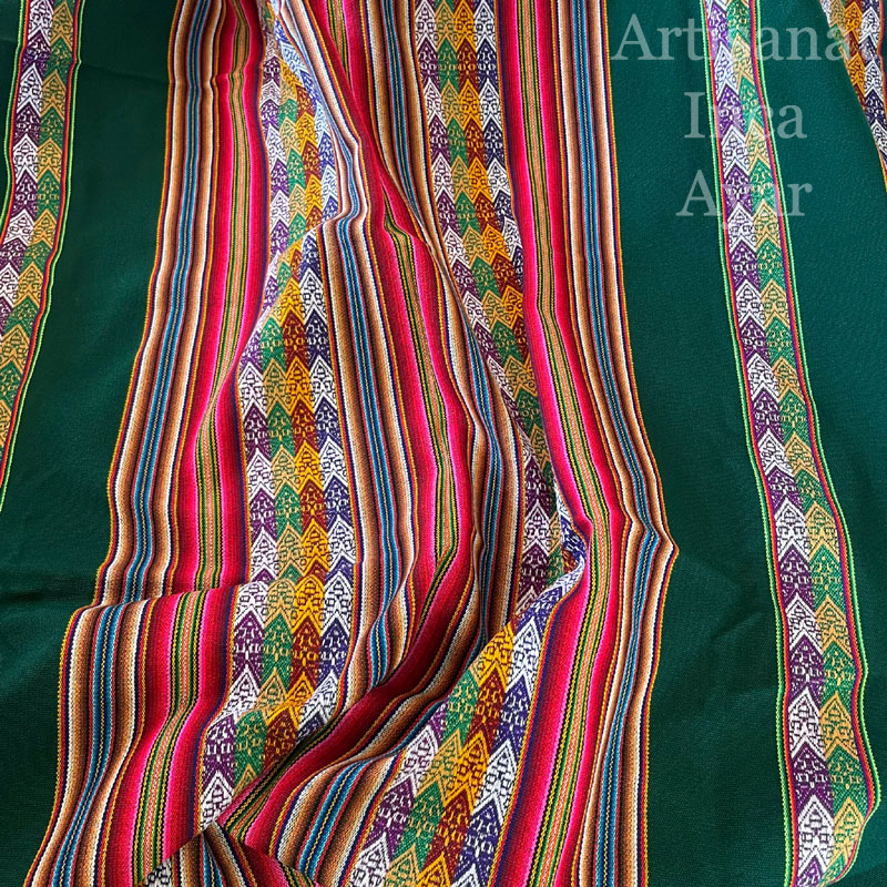 Tissu péruvien vert et multicolore